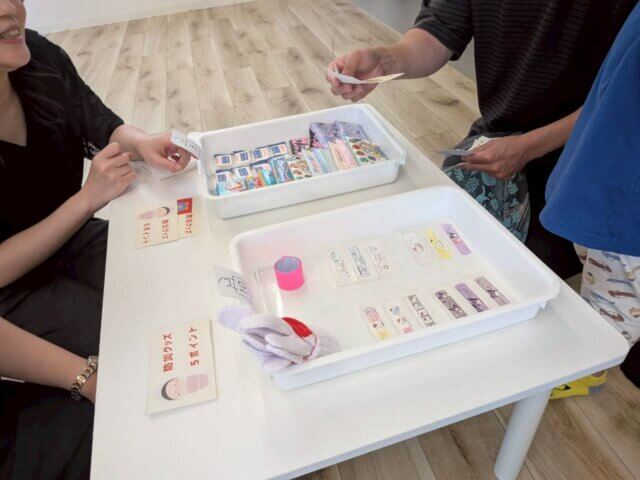 「懐中電灯は必ず入れておこう」「水がないと困るからこれにする」と、子どもたちも真剣に選び、自分だけのオリジナル防災バッグを完成。