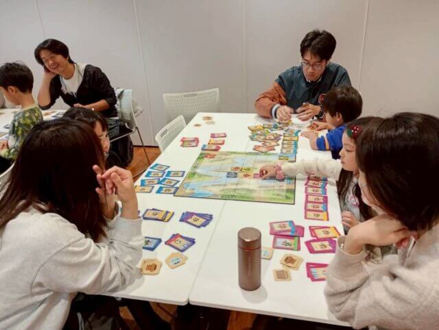 ルールを一緒に確認しながら、カードを並べてゴールまでの道筋を考えます。