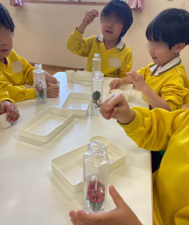 【幼稚園レポート】光のふしぎを体験!~ありがとうを込めたハーバリウム作り~