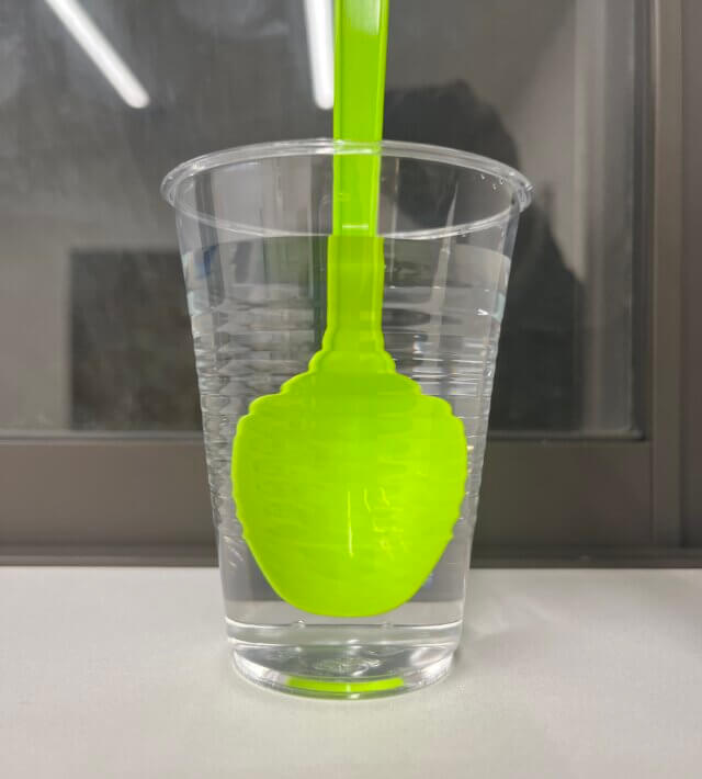 透明なコップに水を入れ、その中にスプーンを入れてみると……