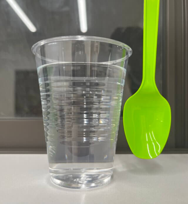 透明なコップに水を入れ、その中にスプーンを入れてみると……