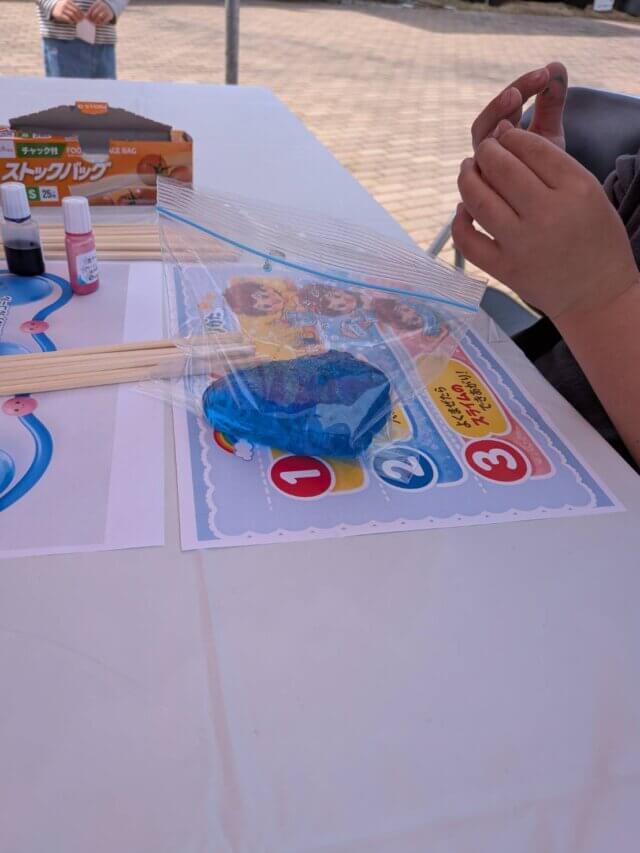 今回のメインイベントは、やっぱりスライム作り!洗濯のりと水に色を付けて、ホウ砂水を加えるだけで…あら不思議!つるつるぷるぷるのスライムが完成しちゃいます。